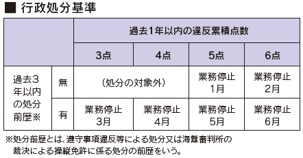 違反点数が下の表に達すると免許停止処分を受けなければいけなくなってしまうのです。