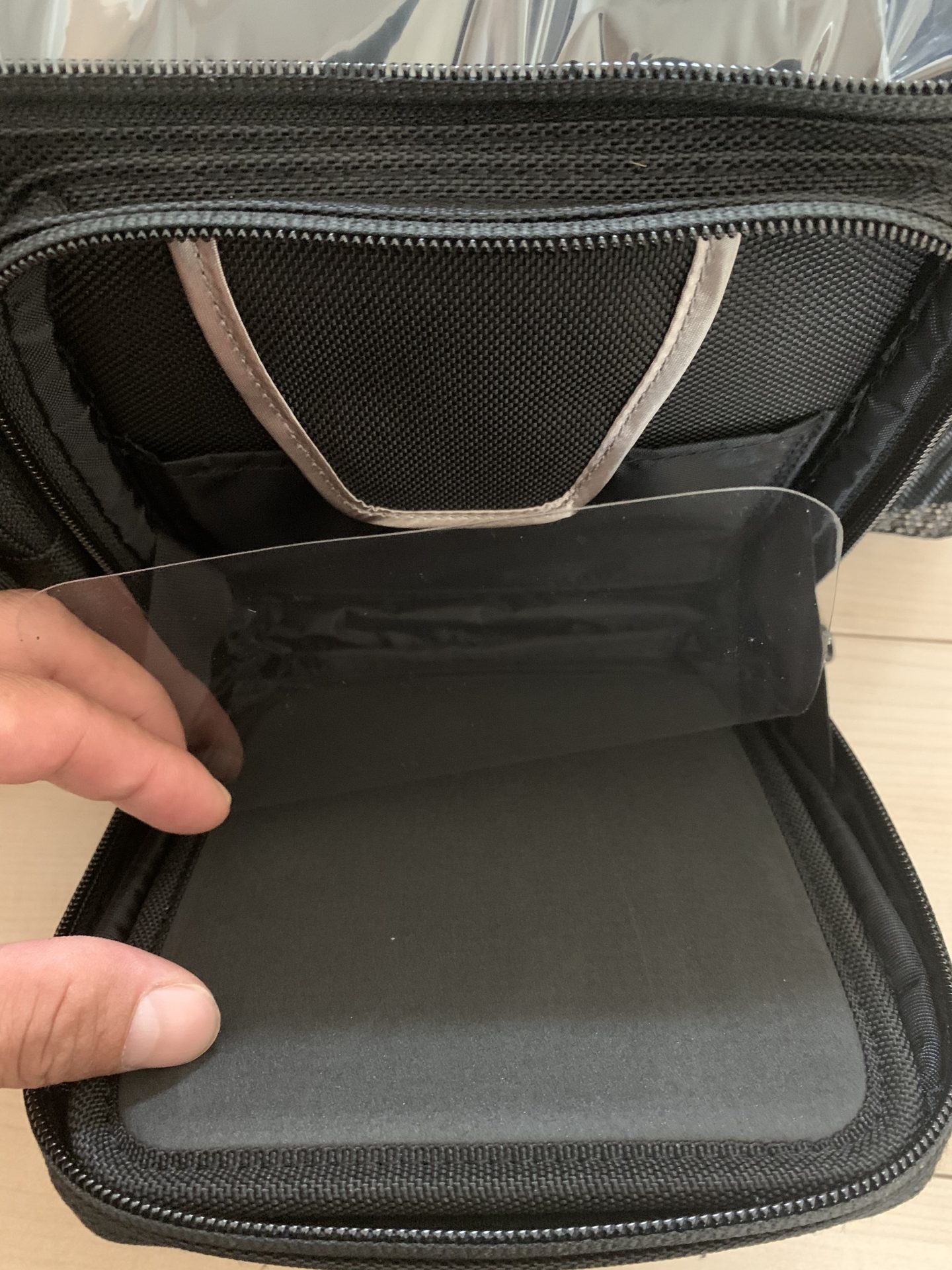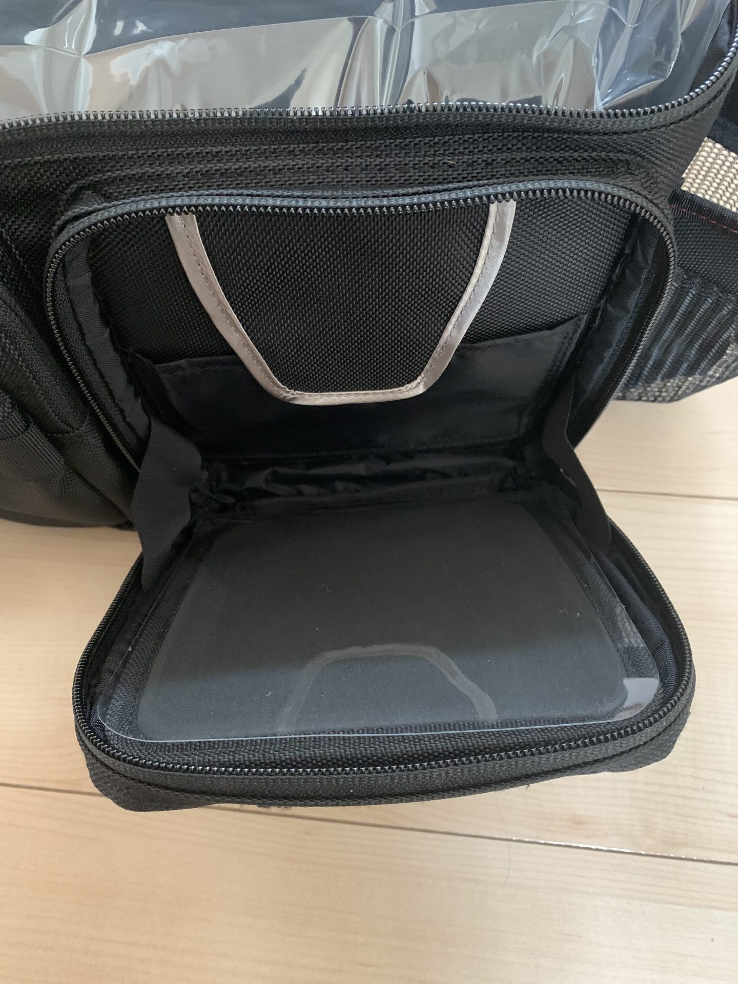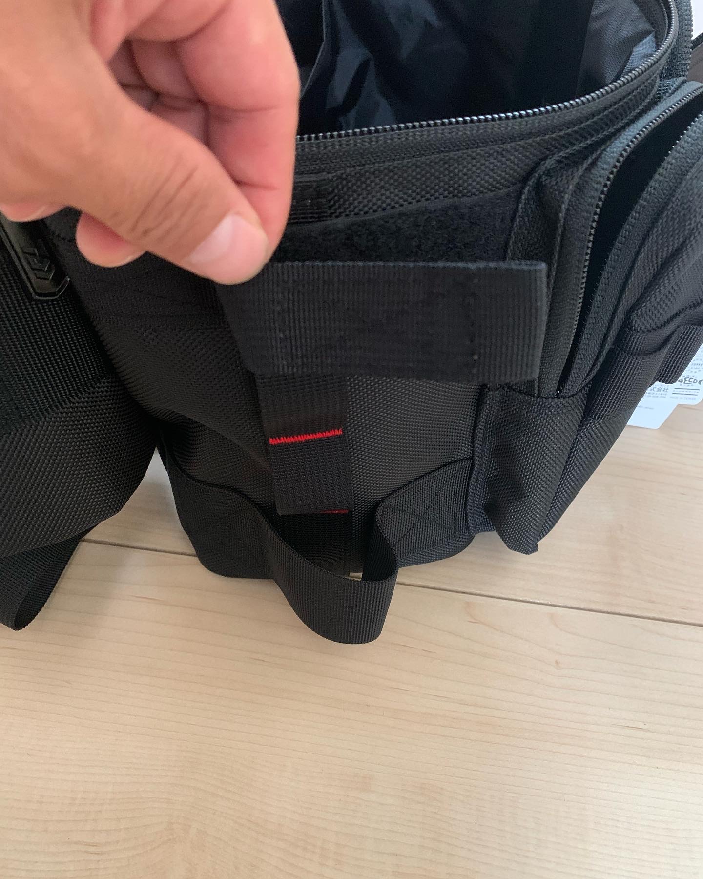 更にこのル収納マットが付属されているポケットは、チャックを閉じるのがノーマル的な収納方法なのですが、チャックを開けたままでもマジックテープで仮止めしておく事ができる所が素晴らしい。
