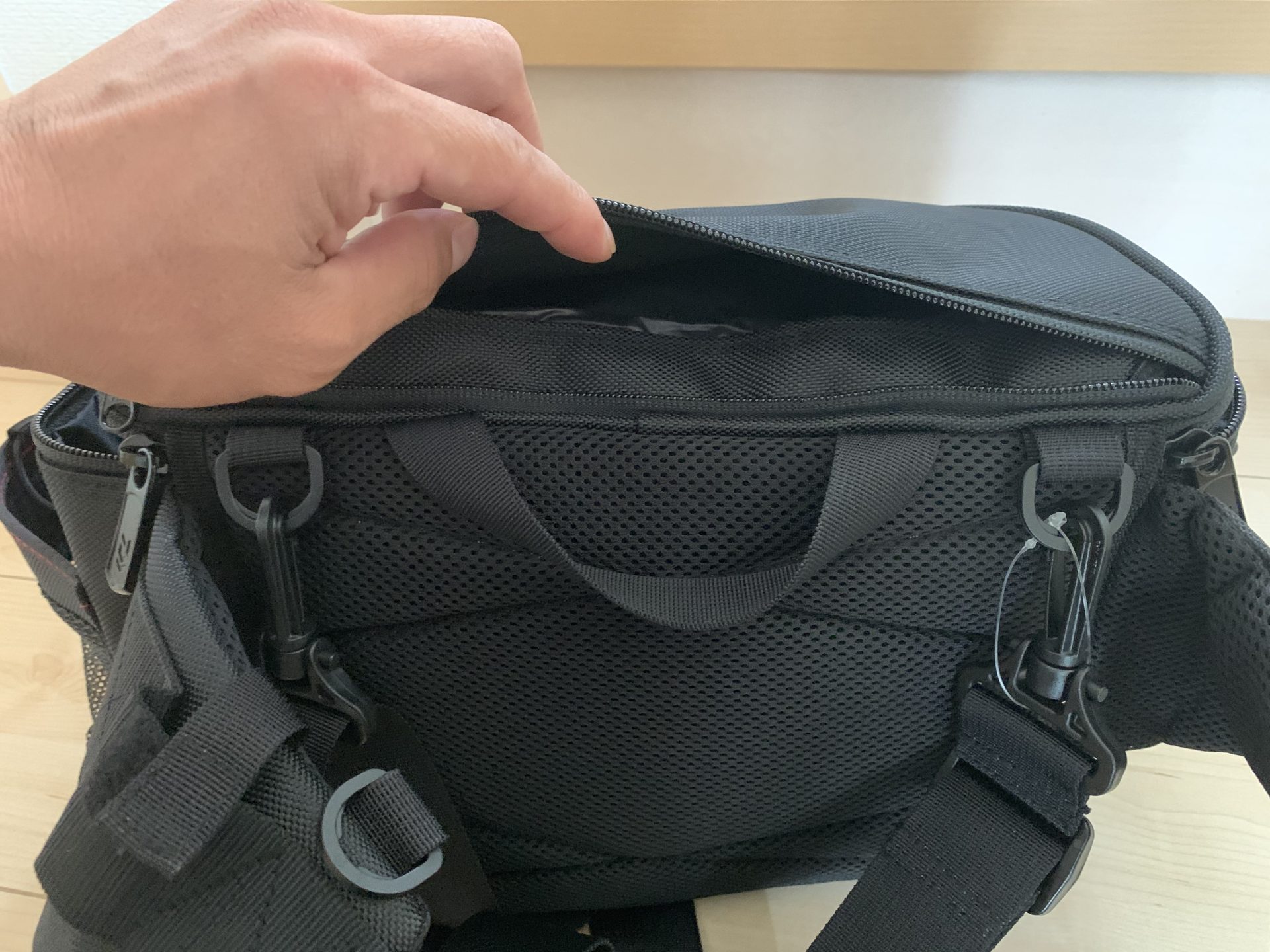 HGヒップバック(B)に付いている謎のチャックはバック自体のレインカバーが収納されています。